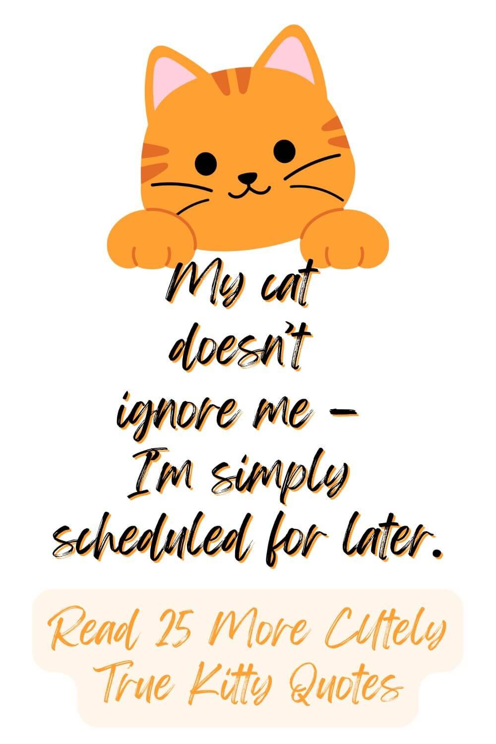 1. โ€œMy cat doesnโ€™t ignore me โ€” Iโ€™m simply scheduled for later.โ€